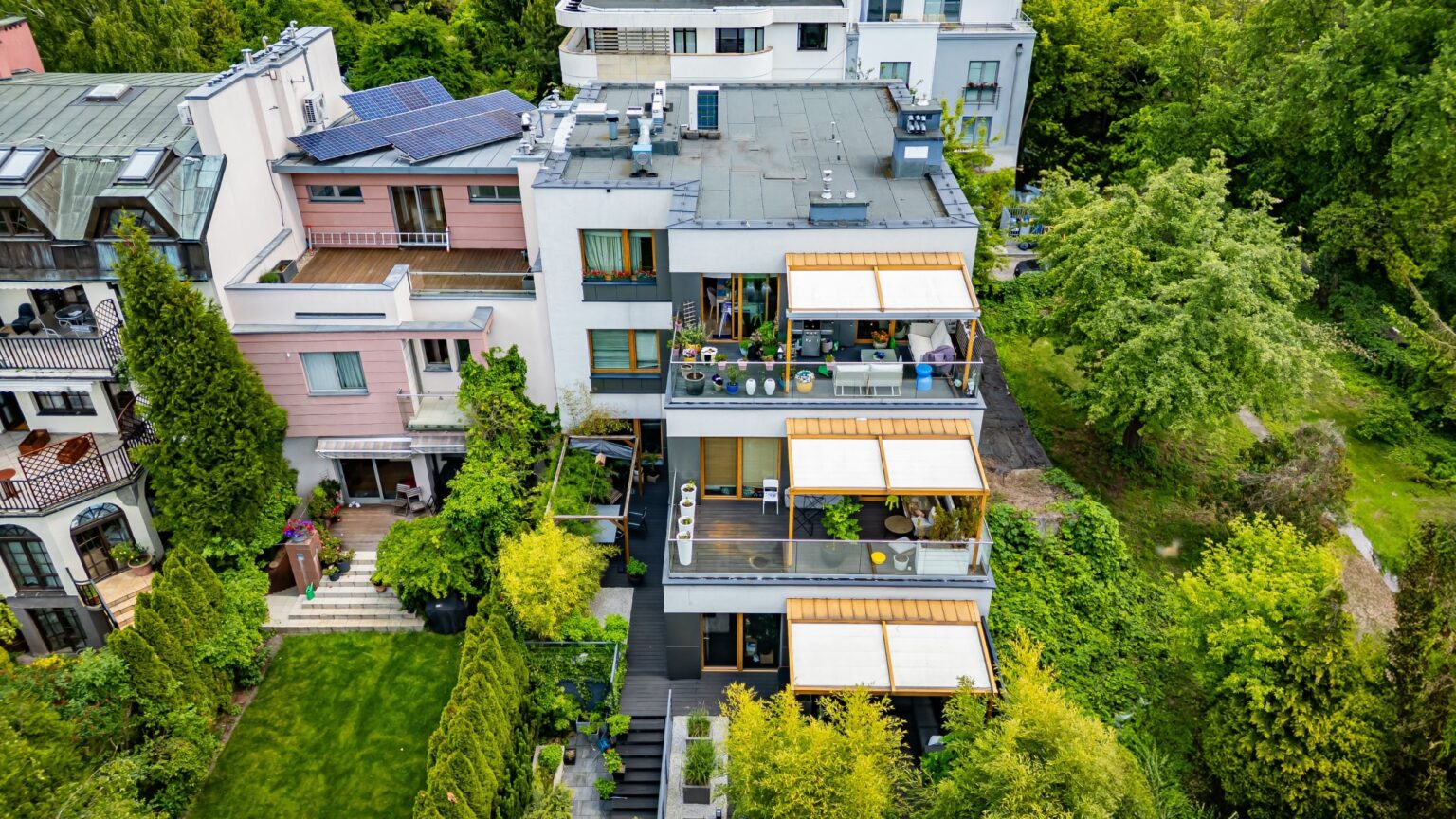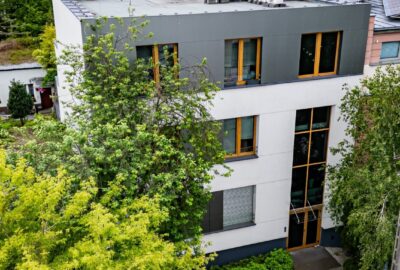 Zrealizowaliśmy nowoczesny budynek mieszkalny wielorodzinny w dzielnicy Bielany w Warszawie, w systemie generalnego wykonawstwa. Bryła obiektu została zaprojektowana na rzucie w kształcie litery L o wymiarach około 12 × 20 m. Charakterystycznym elementem jest stopniowanie kondygnacji – każda kolejna cofa tylne skrzydło o 3 metry, co pozwala na uzyskanie prostokątnego rzutu na najwyższej kondygnacji i nadaje bryle lekkości.
