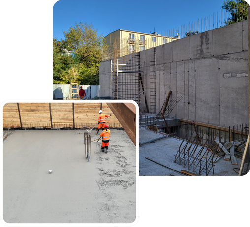 Konstrukcje żelbetowe są naszą specjalnością. Z tego materiału wykonujemy nietypowe obiekty, np. schody, rampy, fundamenty oraz płyty fundamentowe.